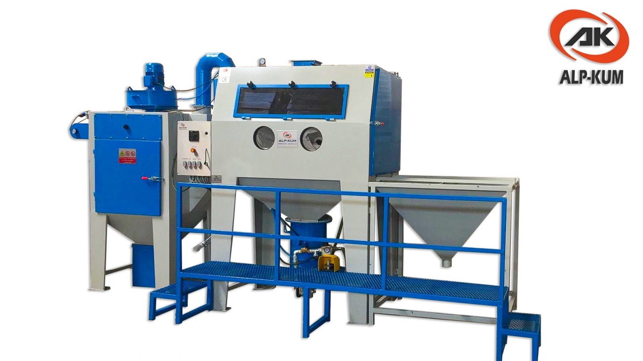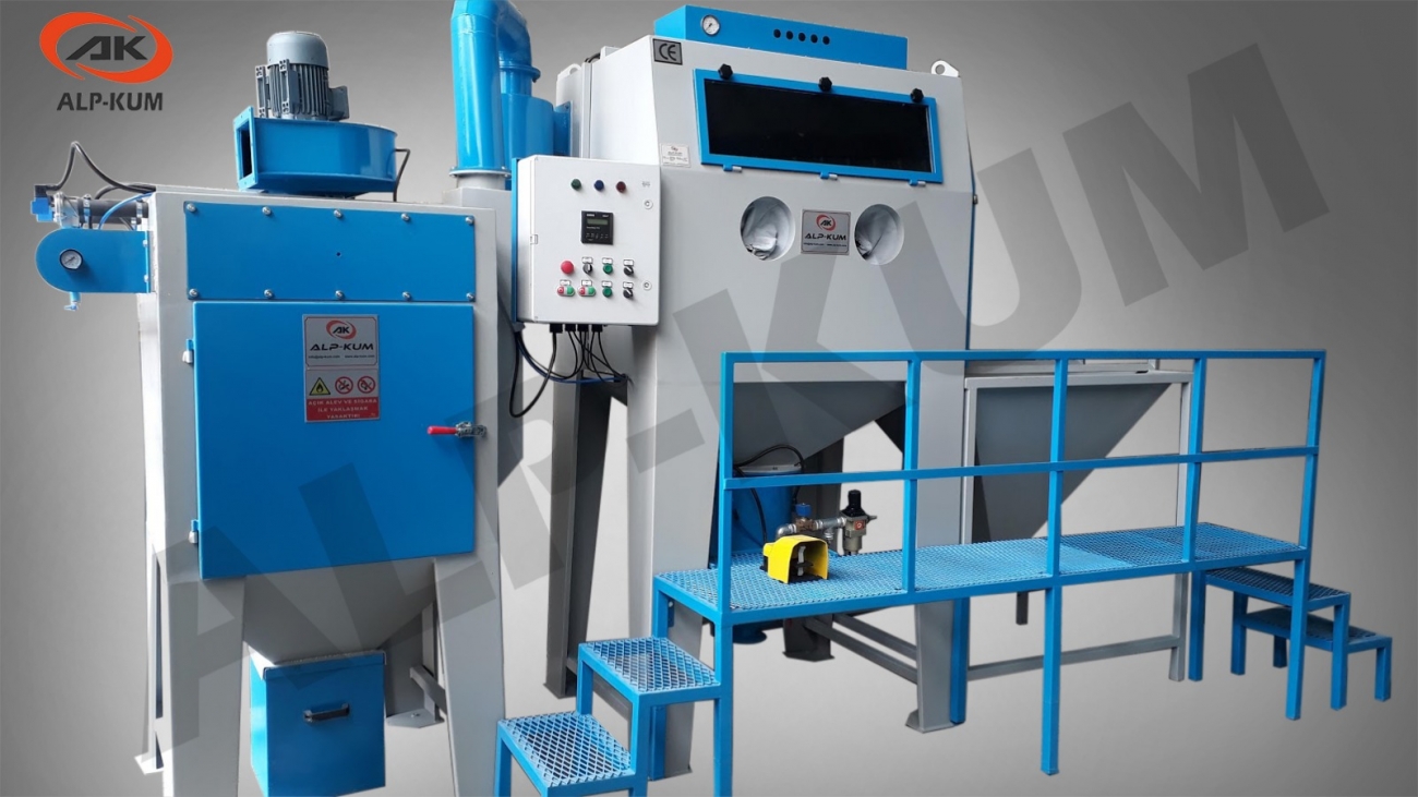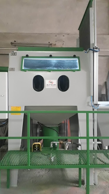 • Basınçlı kumlama makinelerde epoksi boya,pas,kalıplarda oluşan yüzey temizlemesinde kullanılan özel üretim makinelerdir.