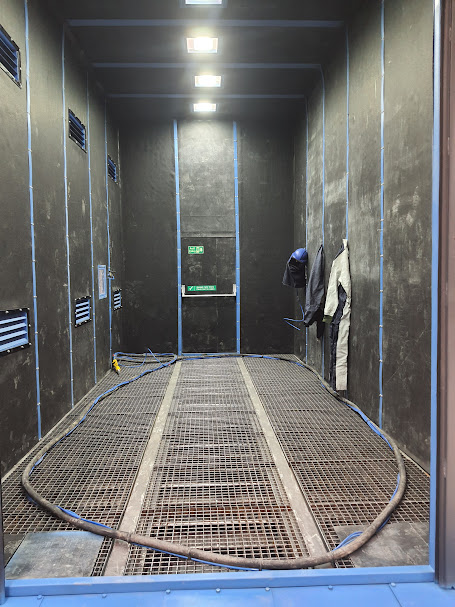 -Kumlama Odalarımız çelik konstrüksiyondur. Cephe kaplaması olarak 50 mm kalınlığında Sandviç Panel kullanılmaktadır (Sandviç Panel; ısı, ses ve toz yalıtımı için ideal bir seçim olduğundan dolayı tercih edilmektedir.)